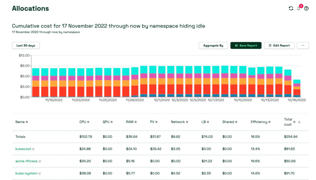 - Use Kubecost – Kubecost is a tool that helps organizations monitor, analyze, and optimize their Kubernetes cluster usage in order to reduce cloud costs without sacrificing performance or agility. The tool provides insights into resource utilization, application health and performance, real-time alerts when thresholds are exceeded, cost projections based on usage patterns, recommendations based on analysis of usage data all in one place making it easy for teams to stay on top of their cloud spend while still having access to the latest features available in Kubernetes environments such as autoscaling, spot instances etc. It is also cloud agnostic, so can run on any of main cloud platforms.